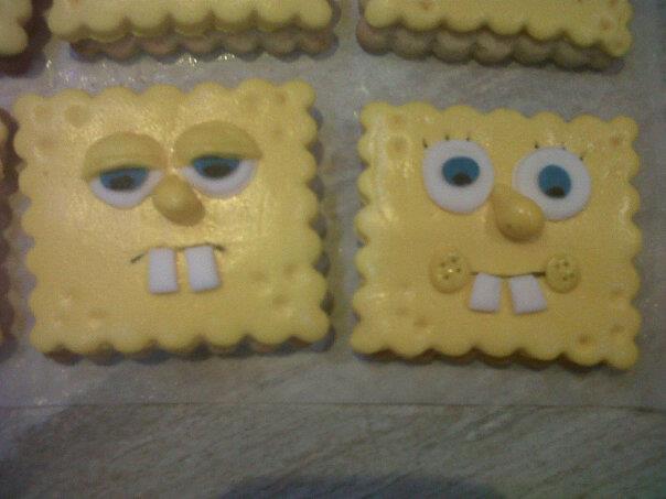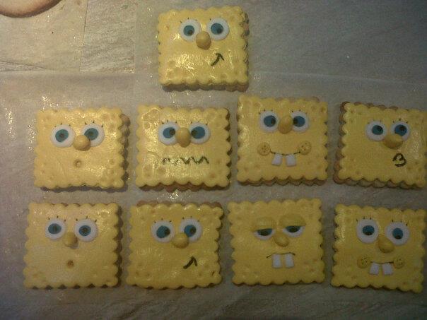 Es un encargo que me pidieron y como ya estaba un poco aburrida de hacer el tipico Bob esponja pues nada me anime a hacerle solo la carita pero con varias expresiones...la idea la saque de internet y a si me quedaron.