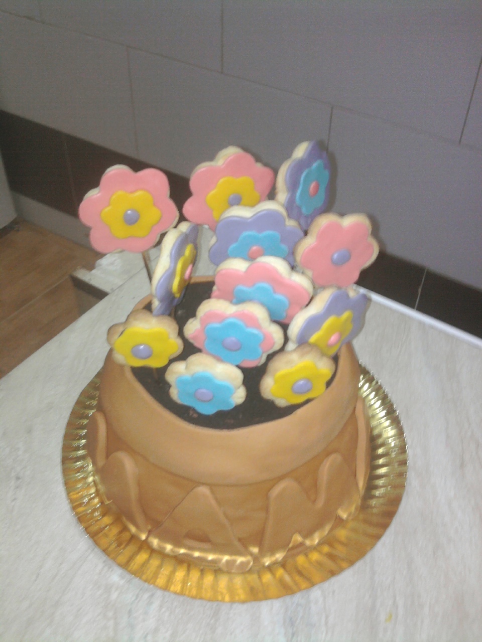 Las flores son galletas de canela decoradas con fondant.
